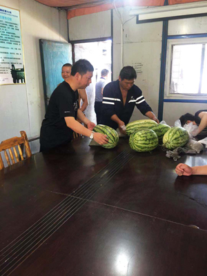 慰问安全检查活动中还发放了西瓜、绿豆、风油精等防暑降温物资,给员工们送去了盛夏的一丝清凉。大家纷纷表示,一定会加倍努力工作,“不忘初心、牢记使命”保证完成各项工作任务。