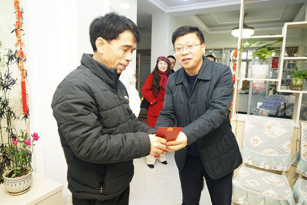 在中鼎集团“劳动模范”余文礼家中,杨斌向他致以亲切问候和新春祝福。杨斌感谢余文礼为企业发展作出的贡献,希望他弘扬劳模精神、劳动精神和工匠精神,发挥示范引领作用,为企业发展贡献力量。企业要多关心关爱劳模,帮助劳模解决工作、生活等方面的实际困难。