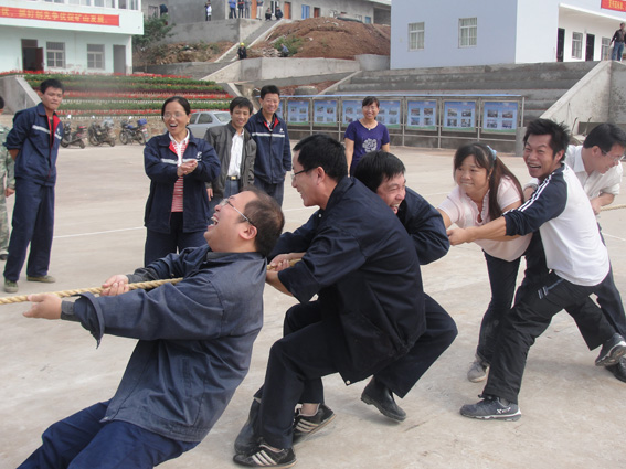 为营造和谐工作快乐生活的氛围,增强职工的企业凝聚力,国庆节当日,白象山铁矿施工项目部组织了一场别开生面的拔河比赛,比赛共分三个队(主井队、副井队、项目部)每个队10名队员、5男5女,比赛采取男女混合赛。