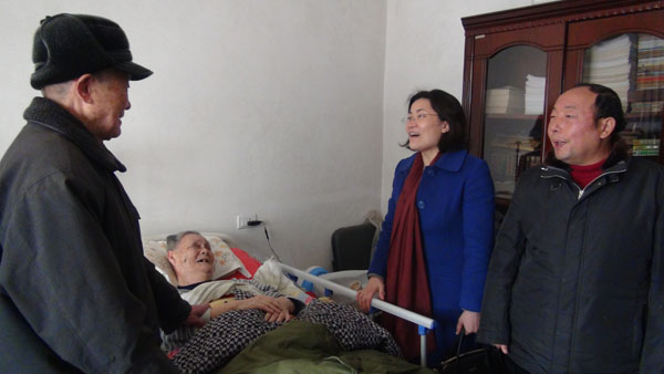 李书记在90多岁高龄、长卧不起的离休干部郑曜的病榻前,拉着老人的手关切地询问老人的身体状况、日常起居等情况,叮嘱陪护人员定要悉心照料。
