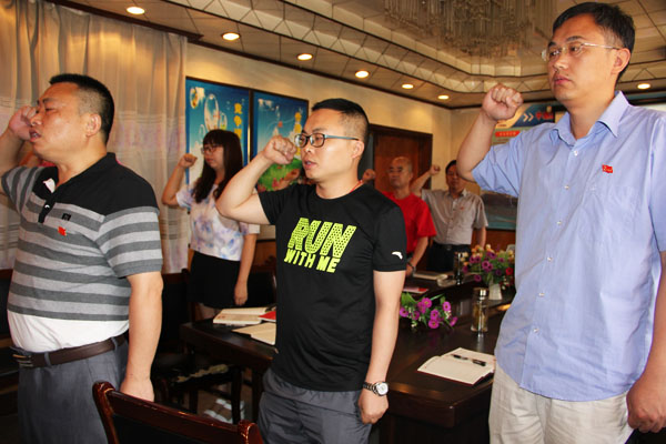 “我志愿加入中国共产党,拥护党的纲领,遵守党的章程,履行党员义务……永不叛党!”全体党员面对党旗举起右手,重温入党誓词,郑重地向党做出庄严承诺。7月1日上午9时整,三处机关党支部纪念建党95周年暨“两学一做”学习教育动员会在庄严的入党誓词声中拉开序幕。三处机关党支部所有在家党员和入党积极分子参加了纪念建党95周年暨“两学一做”学习教育动员会。